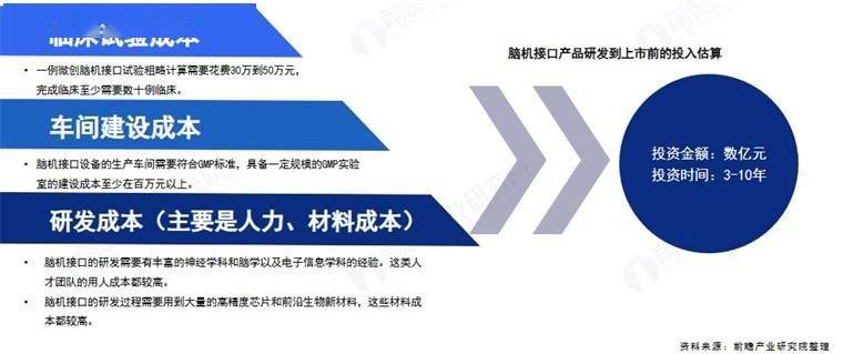 投入成本方面,脑机接口财产具有高风险、高成本的特点,投资仅适合持久耐心本钱。目前我国脑机接口产物按照二类或者三类医疗器械进行产物注册存案和上市发卖办理,初步估算,单一产物的投入至多需要达到数亿元人平易近币,投资收受接管期也需要至多3年以上,且该投入还存正在结果不及预期或者失败的风险。因而,昂扬的投入成本成为了财产成长的庞大障碍,很多企业和投资者对此望而却步。